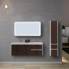 3/ Le meuble de salle de bain ANZIOCet ensemble de meubles suspendus comblera parfaitement tous vos besoins de rangements et apportera une ambiance chaleureuse pour votre salle de bain. Avec son revêtement en bois foncé et ses finitions contrasté en bois clair, ce meuble de salle de bain apportera du charme et beaucoup de caractère à votre espace de toilette. Composé d'un meuble sous vasque avec 3 tiroirs de rangements, d'un meuble colonne avec 2 espaces fermés plus un espace centrale ouvert, et d'une armoire de toilette à 3 portes miroir, l'ensemble Anzio 1200 saura satisfaire tous vos besoins de rangement. L'armoire de toilette dispose de trois parties fermées par des portes miroir et munies d'étagères en verre pour un maximum de confort et d'organisation. Petit plus, le fond de l'armoire se compose de miroirs … très pratique ! |