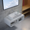 La vasque et le plan de toilette sont moulés en solid surface pour une grande résistance et un fini lisse et mat très moderne. Pratique, le plan de toilette de l'ensemble est percé pour la vasque et pour une robinetterie. La vasque quant à elle, dispose d'une bonde push&up très pratique qu'il vous suffit de presser pour ouvrir ou fermer l'évacuation.